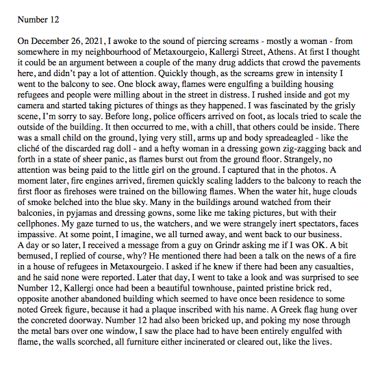 I came here with this slightly wonky concept of reimagining possible gaytopias in the “cradle of Western civilisation”. Amazingly, the idea hasn’t gone away, but it’s become a little more scrappy. I invited a long-time NYC friend, Jack Shamblin, a performer who has increasingly embraced a genderfluid, anarchy-fueled lifestyle in and beyond his artistic practice. We ended up going to Delphi, photographing like mad and eventually making this art video reincarnating the Oracle as this 21st-century trans-being. He sissyfied me one night and we recorded that…Then being in Metaxourgeio, one is confronted by human drama on a daily basis. If I’ve had my camera with me, I’ve documented it.